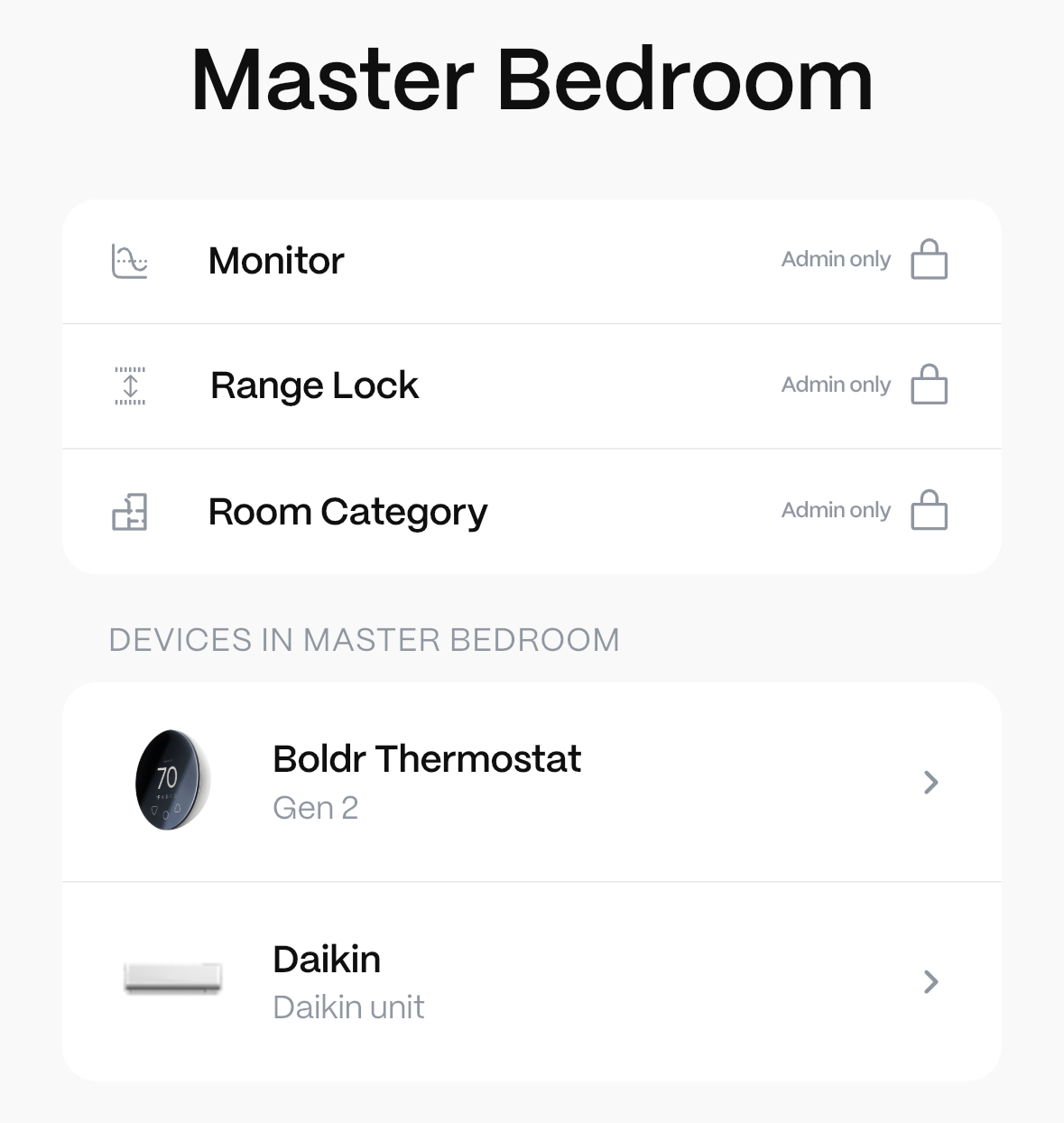 Under the devices segment of your chosen room, choose the Boldr Smart Thermostat device.
